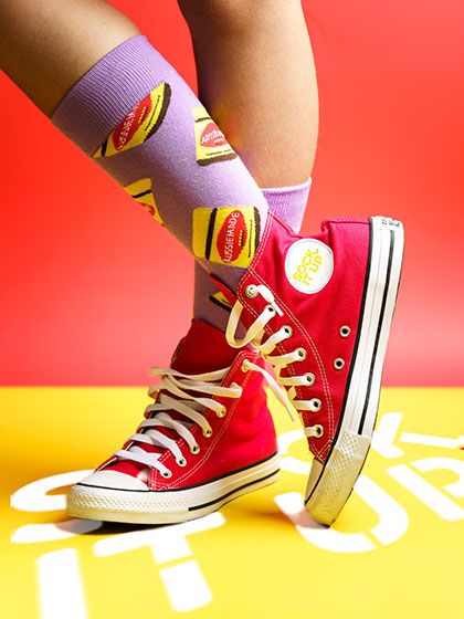These socks spread happiness by turning an everyday essential into a colourful unisex design.